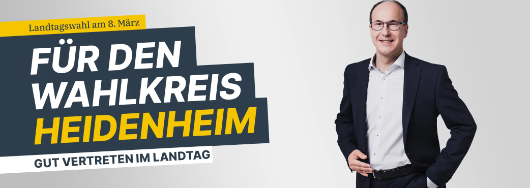 Geben Sie mir Ihre Stimme bei der Landtagswahl am 8. März 2026, damit Heidenheim eine starke und verlässliche Vertretung im Landtag bekommt.
